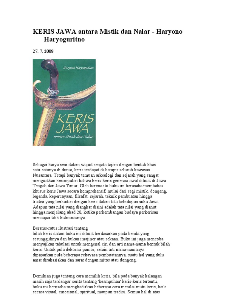 Makna Keris Dalam Budaya Jawa Website Botodayaan